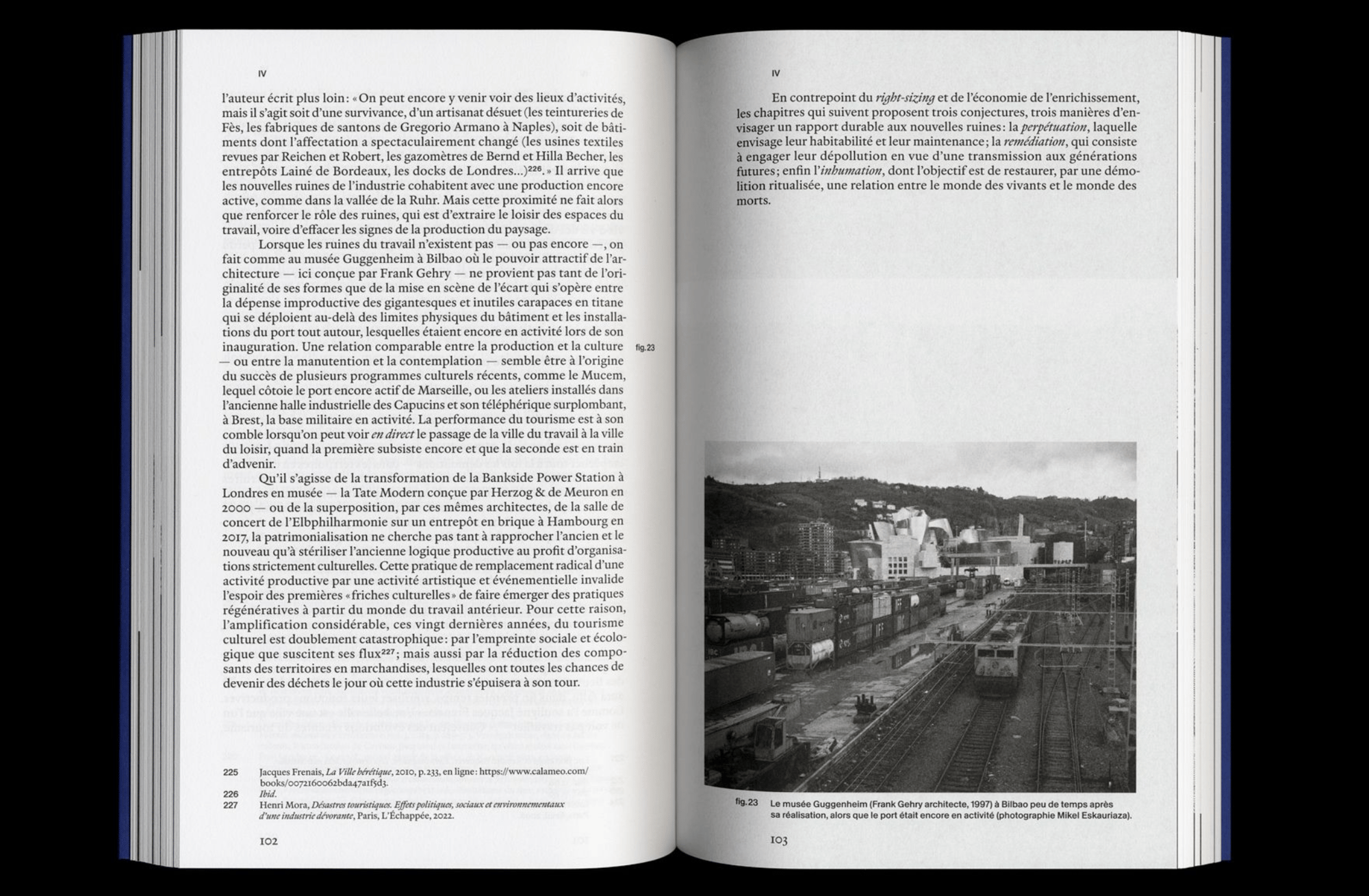 Mais comment convertir des sols et des bâtiments toxiques — ruines potentielles ou avérées — en substrats d’un monde durable? La plupart des artefacts au sein desquels nous évoluons ont en effet été construits au cours du dernier siècle; à ce titre, ils sont très largement responsables des dérèglements écologiques que nous subissons aujourd’hui. Les maintenir ne peut s’envisager sans reconsidérer la capacité de ces mêmes artefacts à compenser des perturbations dont ils sont eux-mêmes la cause. Il ne suffit donc pas de substituer la transformation à la construction; il nous revient également d’aborder les questions techniques et théoriques que pose aujourd’hui la réparation d’un héritage chargé — en quantité comme en désordre — avec lequel nous sommes désormais contraints de nous arranger.»