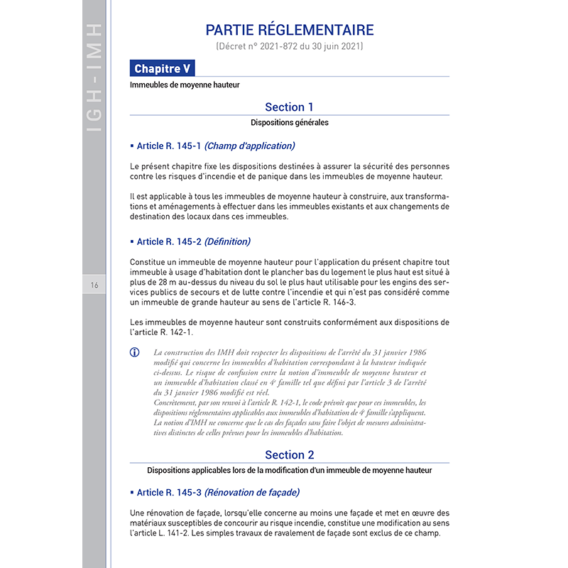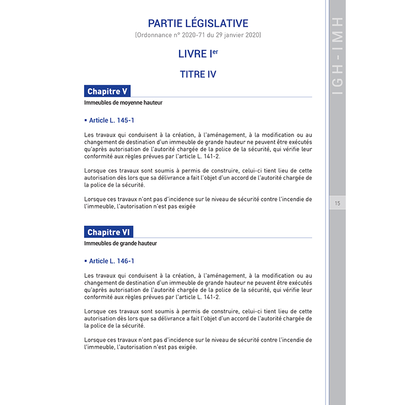 Le tome 1 regroupe les derniers textes publiés concernant les réglementations des immeubles de grande hauteur (IGH) et de moyenne hauteur (IMH). Il est enrichi des commentaires des deux auteurs qui apportent un éclairage précieux issu de leurs participations actives aux travaux d’élaboration du règlement et de leurs contributions techniques sur plusieurs projets de construction d’IGH. Les textes présentés intègrent la recodification de la partie réglementaire du livre Ier du code de la construction et de l'habitation survenue en 2021.